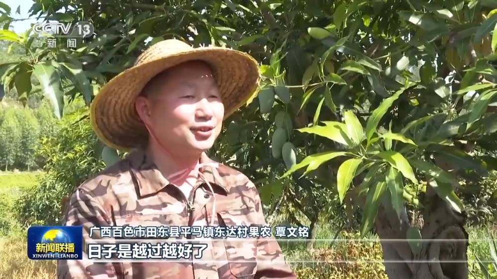 广西百色市田东县平马镇东达村果农 覃文铭:今年又是一个丰收年,这几年我们家通过芒果种植,家里面建了房买了车,日子是越过越好了。